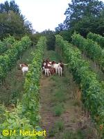 Einsatzbericht: Die dritte Tierrettung in drei Tagen: Ein Winzer meldete freilaufende Ziegen in seinem Weinberg. Diesmal waren die Tiere schon einige Kilometer weit von ihrem Pferch entfernt gewandert. Da die Ziegen quer durch die Weinbergszeilen liefen, entschlossen wir uns zum Aufbau eines mobilen Weidezauns. Damit konnten wir die Tiere auf der Straße zu einem bereit gestellten Viehanhänger treiben, mithilfe des Futtereimers hinein locken und gefangen einem Verantwortlichen übergeben.