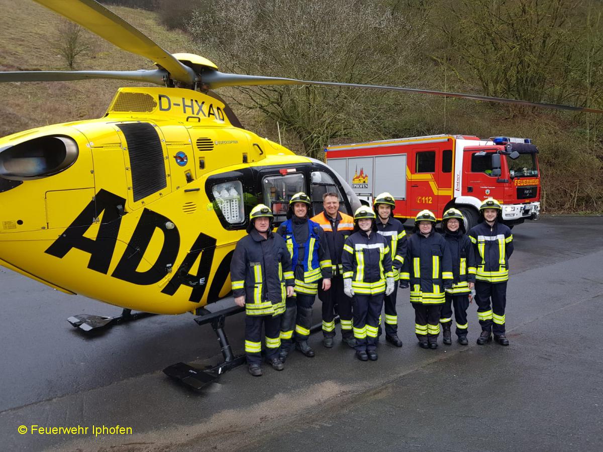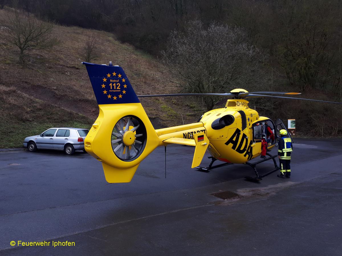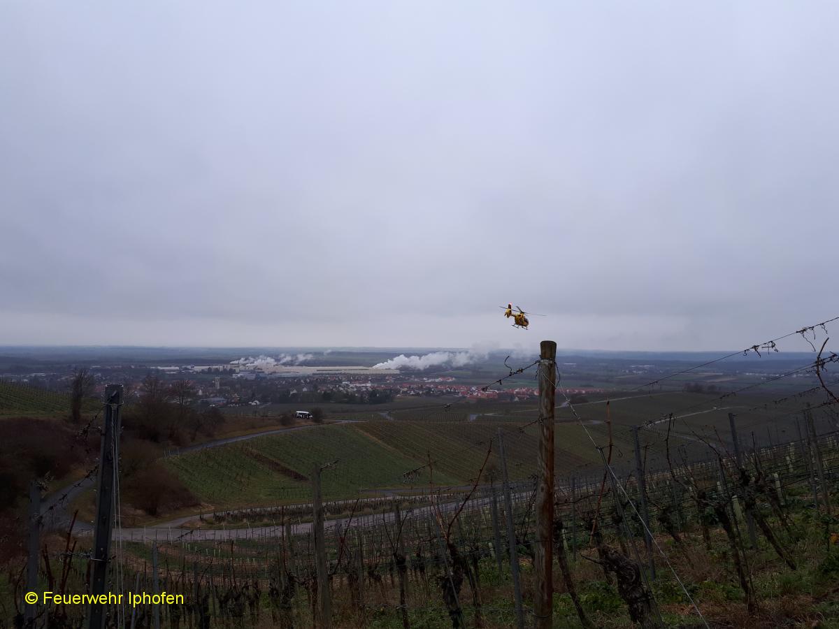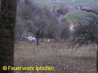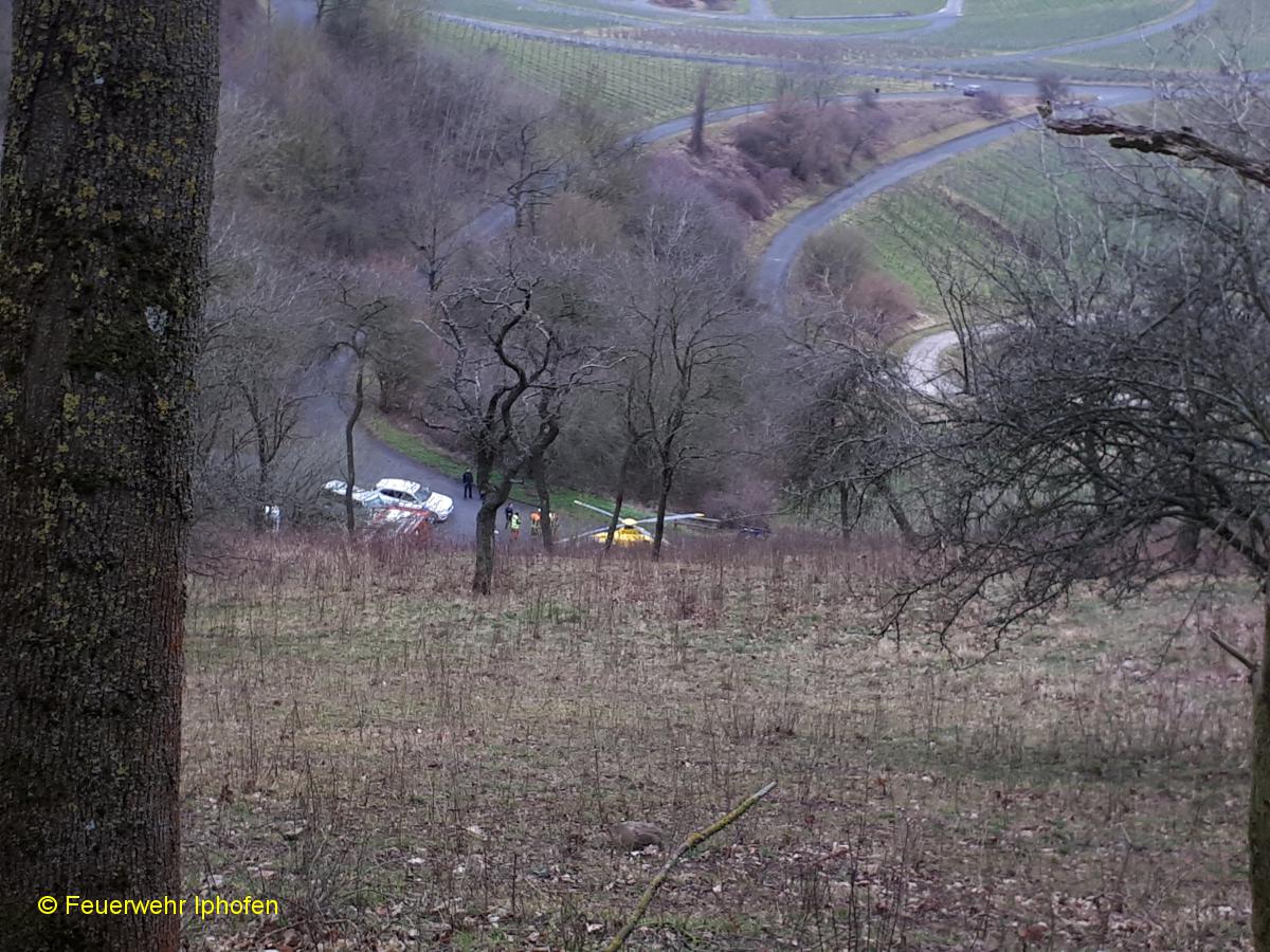 Einsatzbericht: "Tragehilfe am Schwanberg am Iphöfer Knuck" lautete die Meldung. Allerdings stellte sich nach Rücksprache mit der Leitstelle heraus, dass die Koordinaten der verletzten Person nicht bekannt waren. Bei Anfahrt kreiste bereits der Rettungshubschrauber "Christoph 18" über dem Wald, ein RTW parkte oben am Schwanberg, von der verletzten Frau keine Spur. In Zweiertrupps begingen wir systematisch die Waldwege bergauf und bergab, bis ein Trupp nach einer guten halben Stunde die Frau in der Nähe des Birkensees fand. Nach der Erstversorgung durch den Notarzt wurde sie mithilfe der Schleifkorbtrage zum RTW transportiert. Außer der Personensuche übernahm die FF Iphofen die Betreuung von Kind und Hund der verletzten Person sowie die Einweisung von Rettungsdienst und Polizei im Wald.