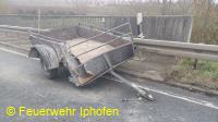 Einsatzbericht: Gemeldet war ein Verkehrsunfall mit verschmutzten Straße. Vor Ort handelte es sich um einen losgerissenen PKW-Anhänger, der einen LKW beschädigt hatte. Wir lenken den Verkehr und reinigen die Straße.