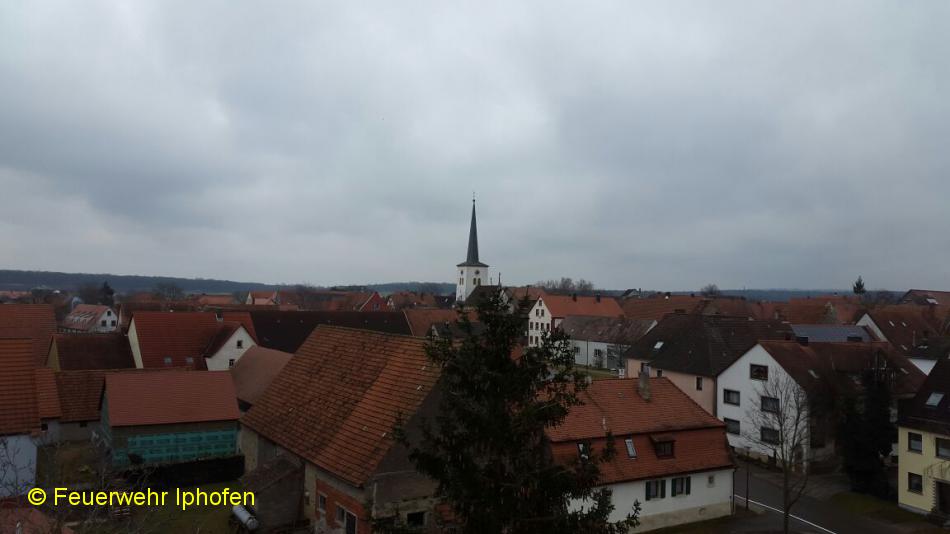 Blick von der Drehleiter über Hellmitzheim