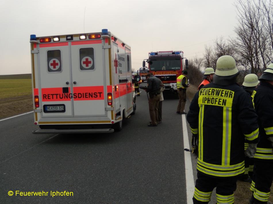 Einsatzbericht: Zu einem Verkehrsunfall auf der B8 wurden am späten Nachmittag die Feuerwehren Iphofen und Possenheim gerufen. Ein Fahrzeug war von der Fahrbahn abgekommen, wegen des Gebüschs konnte die Beifahrerin die Tür nicht öffnen. Nach Entfernen der Äste mittels Motorsäge konnte die gehbehinderte Frau befreit und dem Rettungsdienst übergeben werden. Um die eingesetzten Kräfte zu schützen, wurde die B8 voll gesperrt.