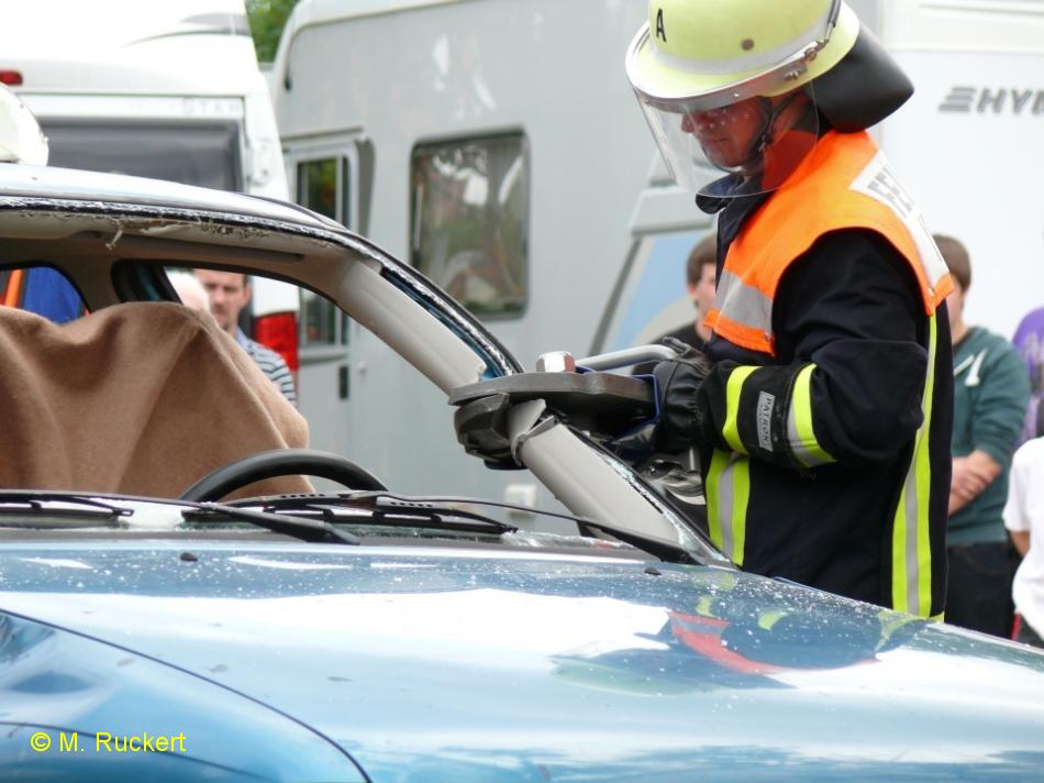 Angenommen wurde ein Verkehrsunfall mit eingeklemmter Person.