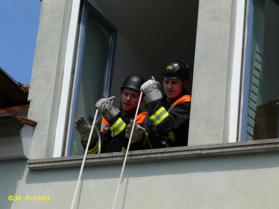 Anfahrt Wer ist schneller: Personenrettung über Drehleiter versus Leiterhebel.