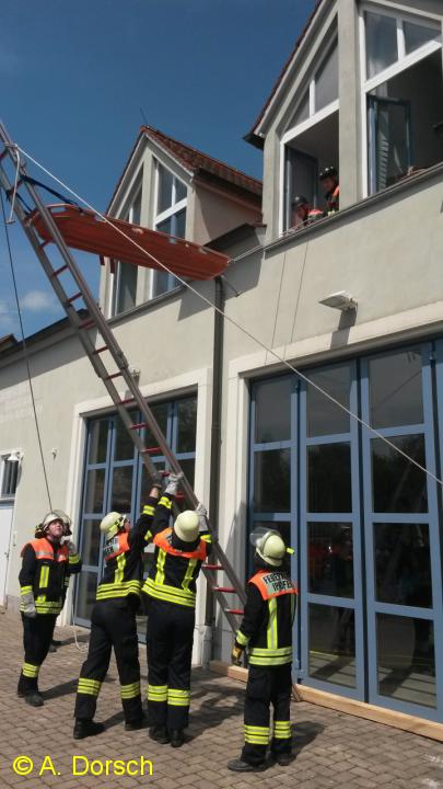 Unterdessen Befestigung des Schleifkorbes an der Leiter. Der Transport geht dann recht zügig.