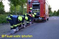Details: 14 Feuerwehrleute in zwei Gruppen legten erfolgreich die Leistungsprüfung "Die Gruppe im Löscheinsatz" ab. Unter den kritischen Augen der Schiedsrichter Karl Volland, Thomas Stegmeier und Stefan Waldow mussten hierzu Knöten gelegt und gestochen werden, Fragen zur Gerätekunde und Ersten Hilfe beantwortet werden, ein Standardlöschangriff aufgebaut werden und zum Schluss eine Saugleitung gekuppelt werden. Beide Gruppen bestanden problemlos, sodass sich die Teilnehmer jetzt "Edelmetall" von Bronze bis Gold-Rot ans Revers heften dürfen.