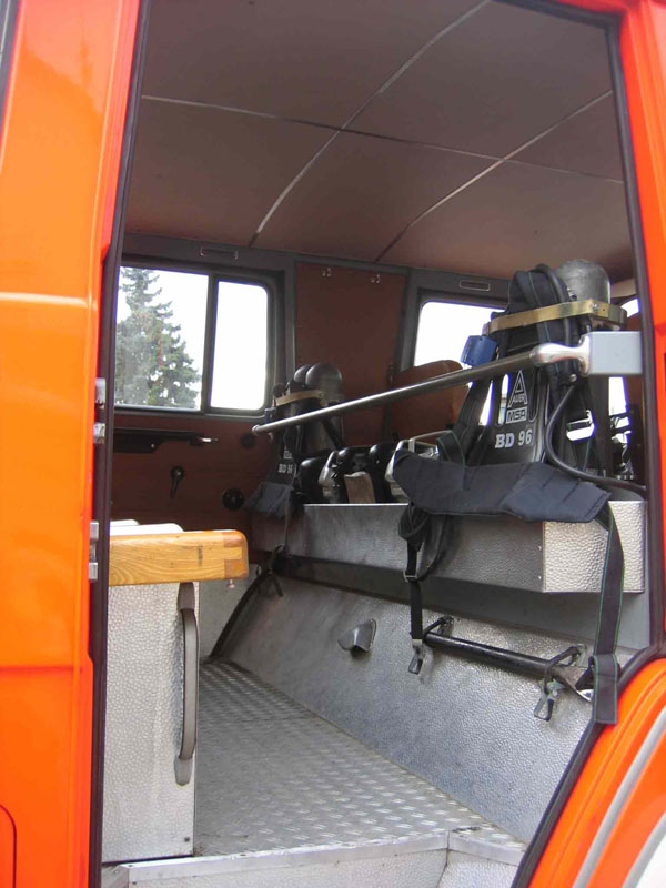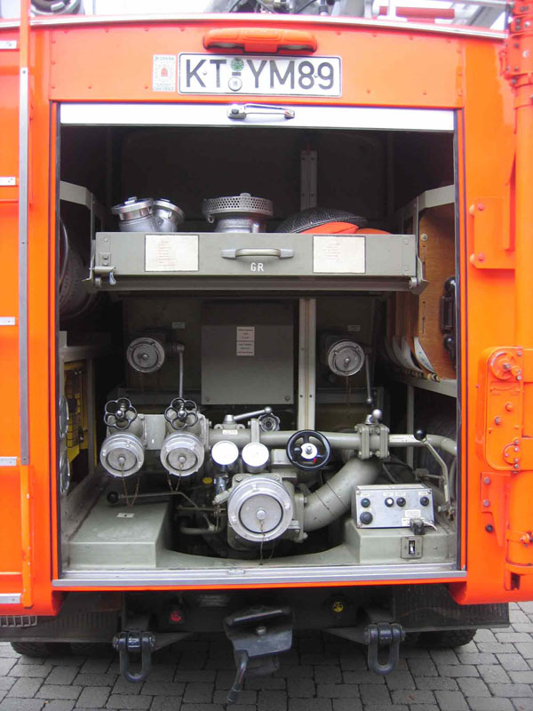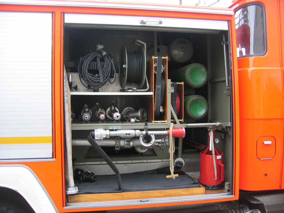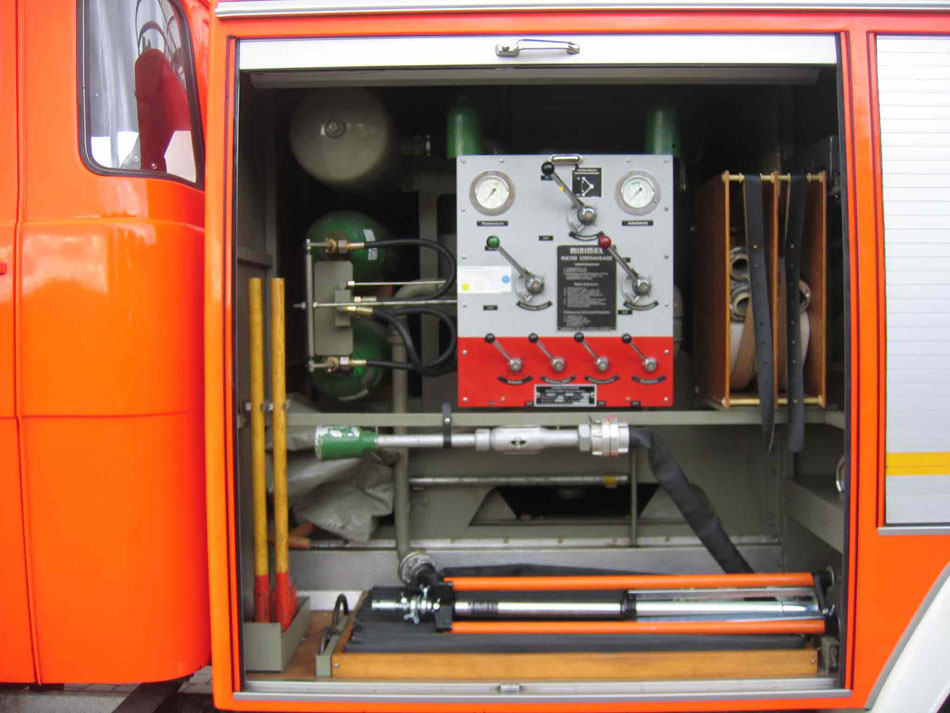 mit dem 2. Schnellangriff für Pulver, Feuerwehraxt, Leitstand für Pulverlöscheinrichtung, sowie die Druckflaschen für die Pulverversorgung