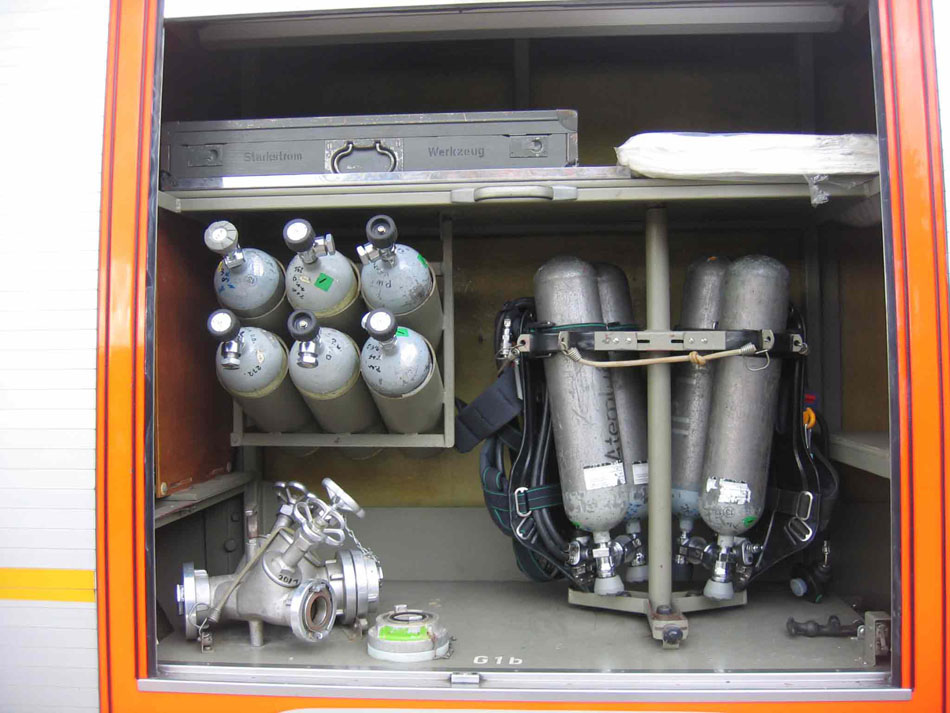 mit weiteren 2 Atemschutzgeräten, Atemschutzersatzflaschen, Verteiler, Werkzeuge für Strom